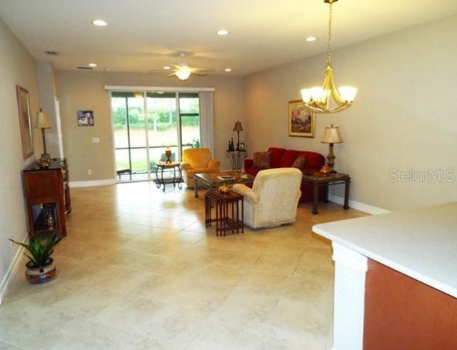 This is a wonderful age restricted community so come and enjoy this beautiful 2-Bedroom 2-Bathroom villa in highly desirable VALENCIA LAKES. The home features high ceilings, as you walk through the foyer you'll walk into a large great room with separate dining area , a large master bedroom with a large walk-in closet, en-suite master bathroom walk-in shower, the second bedroom is also nicely sized with adjacent second bathroom. You also have inside laundry room leading into the two-car garage and on rear a large screened in patio where you can evening drink enjoying the sunset view. Valencia lakes features resort style living which includes a resort style pool, spa's, steam rooms, a clubhouse with exercise studio, fitness center, pickleball courts, temps course and so much more.