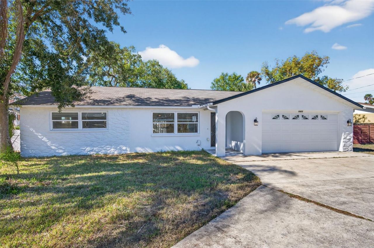 WELCOME TO YOUR WATERFRONT PARADISE at 5425 Drinkard Dr, New Port Richey, FL. This FABULOUS 1-STORY CANAL-FRONT HOME on a BIG corner lot with 9,624 sqft features 3 bedrooms, 2 bathrooms & 2-car garage with 1,715 sqft of living space, offering the ULTIMATE FLORIDA SALT LIFE LIFESTYLE. From the moment you arrive, you'll notice the EXPANSIVE DRIVEWAY providing ample parking for guests, boats & toys. Step inside and be greeted by a BRIGHT & AIRY OPEN-CONCEPT FLOOR PLAN filled with NATURAL LIGHT streaming through the DOUBLE-PANE, THERMAL-TINTED, LOW-E WINDOWS illuminating the interior together with the multiple light fixtures. LUXURY VINYL FLOORING [12mm thickness & Sand Beach color] elegantly flows throughout the entire home. The OPEN FLOOR PLAN consists of the kitchen, living, dining & family rooms. The HUGE living room features chair molding which flows into the dining room which also features a built-in cabinet & double glass sliding doors to the screened lanai. Generous in size is the family featuring a ceiling fan & another set of glass sliding doors to the lanai. The BEAUTIFUL kitchen consists of NEW cabinetry with MODERN GOLD handles, recessed lights, deep farmhouse sink with gooseneck faucet, tray ceiling, artistic custom finish on the counters, complimentary marble-look backsplash, floating shelves & stainless steel appliances including a French door fridge, dishwasher, disposal, microwave & convection oven/range. Retreat to your PRIVATE PRIMARY SUITE which can accommodate king-size furniture. The primary bathroom features shaker-style gray cabinets, MODERN rectangular sink, cultured marble counter, tray ceiling, medicine cabinet & step-in shower with hexagonal tile floor & large ceramic subway tiles. The second bedroom can also accommodate king-size furniture & has dual closets. In this split plan, the third bedroom is located off the family room & has waterfront views. The full bathroom consists of dual sinks, tray ceiling, shaker-style cabinets & tiled tub/shower combo. In the oversized garage, you'll find the NEWER water heater, laundry hookups, utility sink, Generac power system for the generator, side door exit & hurricane-rated garage door. BONUS: All the house systems have been updated too! Step outside to your BACKYARD OASIS where TRUE INDOOR-OUTDOOR LIVING comes to life! The COVERED portion of the screened lanai is MASSIVE with dimensions 40' x 12'. The screened lanai extends out for an additional patio space of approximately 23' x 20' with a firepit as its center. There are convenient 3 screen door exits into the FULLY FENCED YARD. Launch your kayak or paddleboard from your backyard or hop on your boat for a day of fishing. Your MARVELOUS house will faces East so you can enjoy the setting sun painting the sky in VIBRANT COLORS every evening. Hop on your GOLF CART & CRUISE to downtown New Port Richey featuring FANTASTIC restaurants, taverns, festivals, shopping & professional offices. Sims Park is PHENOMENAL for everyone with a playground, splash pad, walking paths along the river & an outdoor amphitheater. The public boat launch is just a few short minutes away where you can take your boat directly to the Gulf of Mexico or enjoy kayaking down the river. Robert K. Rees Beach Park is about 3.8 miles away! The City of New Port Richey is BUSTLING & THRIVING! Location is IDEAL near schools, beaches, medical plazas, shopping centers, restaurants, places of worship, airport & tourist attractions. MAKE THIS YOUR FUTURE HOME!