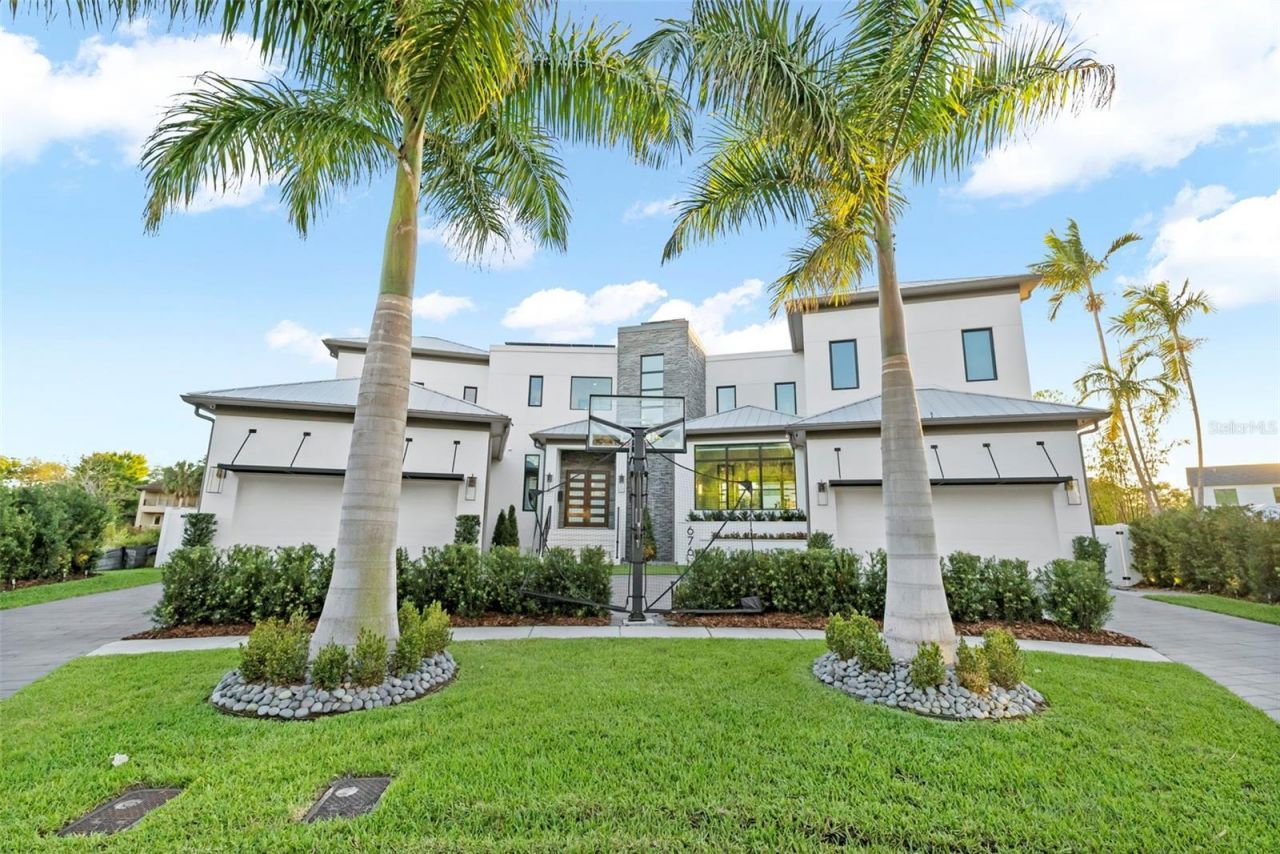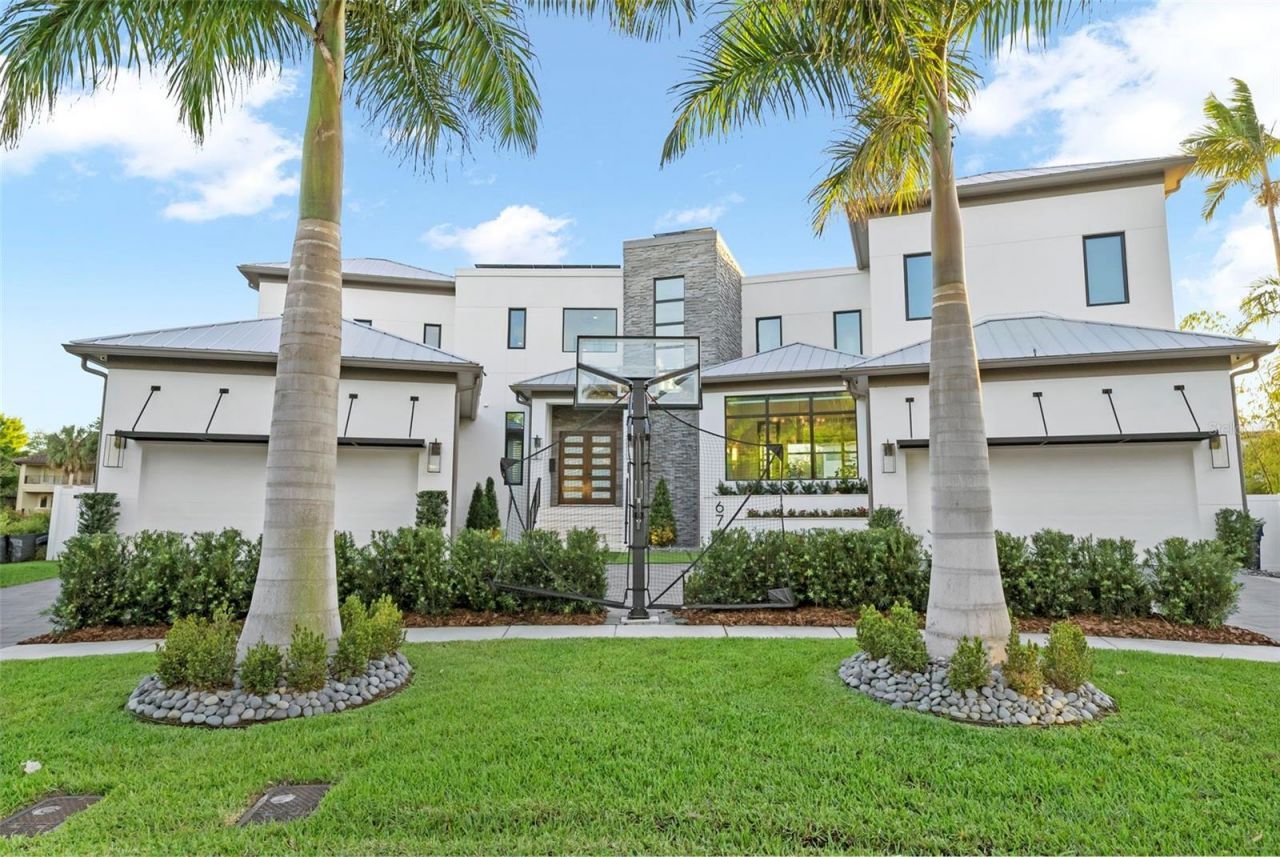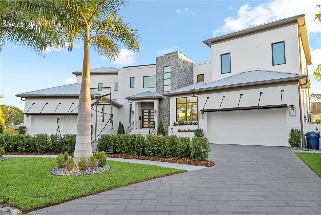 An architectural statement on Davis Islands - this fully furnished 6,226 sq ft custom waterfront home, designed by the renowned Thomas Everett Lamb and completed in 2022, is offered at $42,000/month. 4 bedrooms | 6.5 baths | game room | exercise room | private office | chef's kitchen | wet bar lanai | pool & spa | wood dock with covered boat port & lift | 4-car garage + 3-car hydraulic lift (6 vehicles total). Each bedroom en-suite with walk-in closets. Primary bath features soaking tub, rain shower, granite counters. Porcelain tile throughout. Direct bay access minutes from downtown Tampa. Fully furnished. Lawn and pool service included.