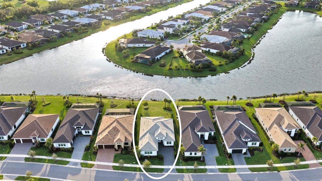 Positioned on one of the most coveted lakefront homesites within Artistry Sarasota, this impeccably enhanced Monet residence embodies a refined, tranquil lifestyle with a thoughtful balance of privacy, elegance, and modern comfort. Lush, mature landscaping lines both sides of the backyard, creating a secluded sanctuary while preserving sweeping water views and generous space for a future pool-an ideal backdrop for quiet mornings and effortless outdoor living. The residence offers a sophisticated and functional layout with three ensuite bedrooms, a dedicated den, and a well-appointed powder room for guests. The primary suite with wood effect Porcelain tile flooring is a serene retreat, oriented to capture long lake vistas and soft natural light enhancing the home's calming atmosphere. Inside, the interiors present a crisp, luminous aesthetic complemented by carefully curated upgrades, including large format high gloss tile. The great room is anchored by a custom-designed fireplace feature, framed by solid white oak built-in shelving and cabinetry with integrated lighting-delivering both architectural presence and warmth. Over $130,000 in builder and owner enhancements elevate the home throughout, including whole-house plantation shutters, bespoke drapery, custom office built-ins, and a redesigned laundry room with added cabinetry and workspace. Further refinements include large-format polished tile flooring across the main living areas, quartz surfaces in the kitchen, soft-close cabinetry with crown detailing, designer lighting, and spa-inspired bathrooms with tile extending to the ceiling. The outdoor living experience is equally considered, with a screened patio enclosure, professionally reimagined landscaping, and sealed paver driveway completing the home's polished presentation. As one of the most extensively upgraded Monet residences currently available, this property offers a rare level of completion and move-in readiness within the community. Residents of Artistry Sarasota enjoy a gated, maintenance-free environment complemented by resort-style amenities, including a clubhouse, pool, pickleball and basketball courts, playground, and scenic walking trails. With no CDD fees and a location outside of a flood zone, the home also provides peace of mind. Ideally situated, this residence offers convenient access to The Mall at University Town Center, championship golf courses, acclaimed dining, and the renowned cultural and waterfront destinations of Sarasota-including its world-class beaches and vibrant arts scene. Furnishings may be available separately.